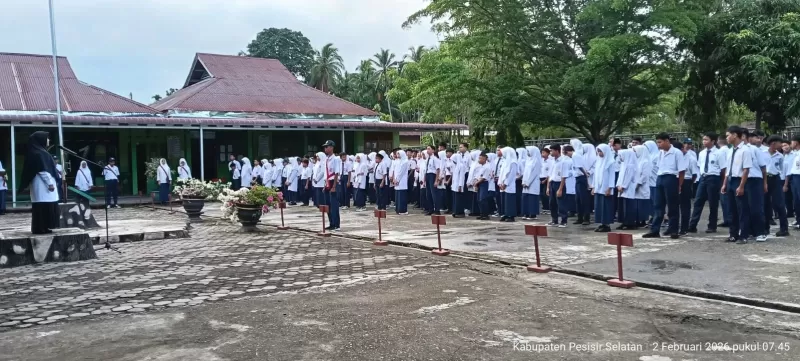 Batang Kapas, Humas — MTsN 13 Pesisir Selatan menggelar upacara bendera pada Senin pagi (02/02) di halaman madrasah dengan tertib dan khidmat. Uniknya, tata tertib upacara dibacakan menggunakan bahasa Indonesia dan bahasa Arab, menambah nuansa religius sekaligus meningkatkan kemampuan kebahasaan siswa.